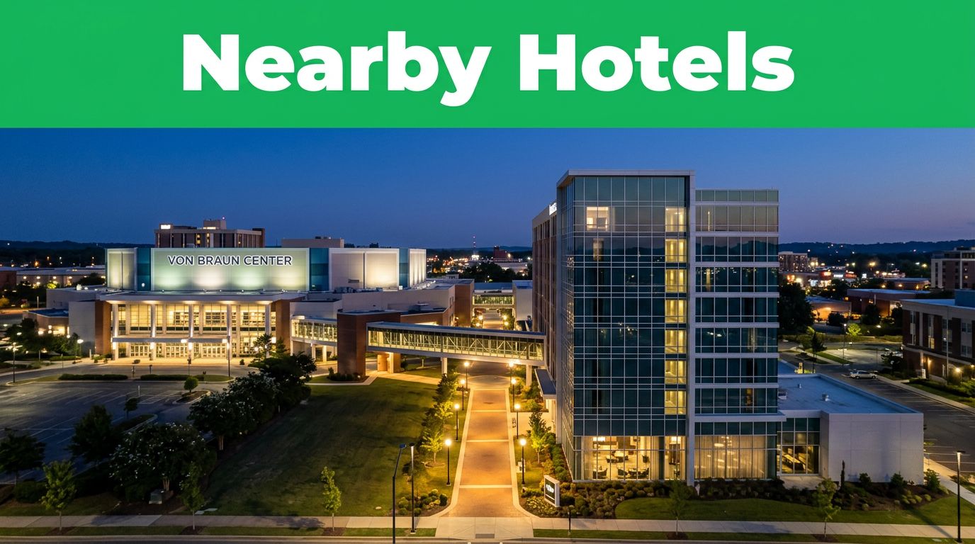 If you’re booking hotels near Von Braun Center, distance matters more than lobby style. After the show ends, you want a short walk, steady parking, and a quick reset in your room.